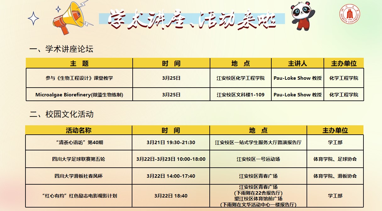2138CC太阳集团2025年3月21日-2025年3月25日讲座和活动预告