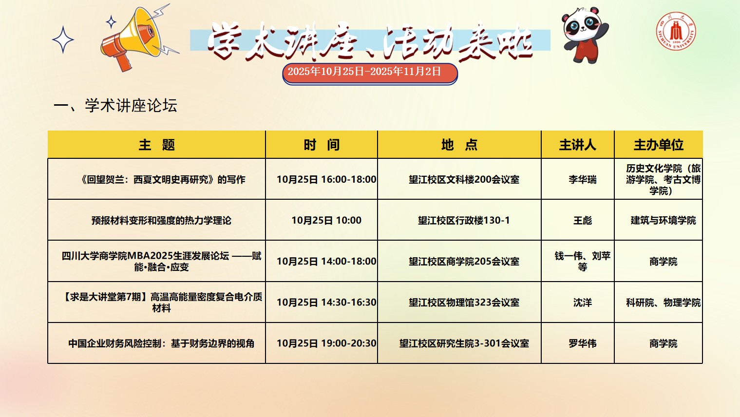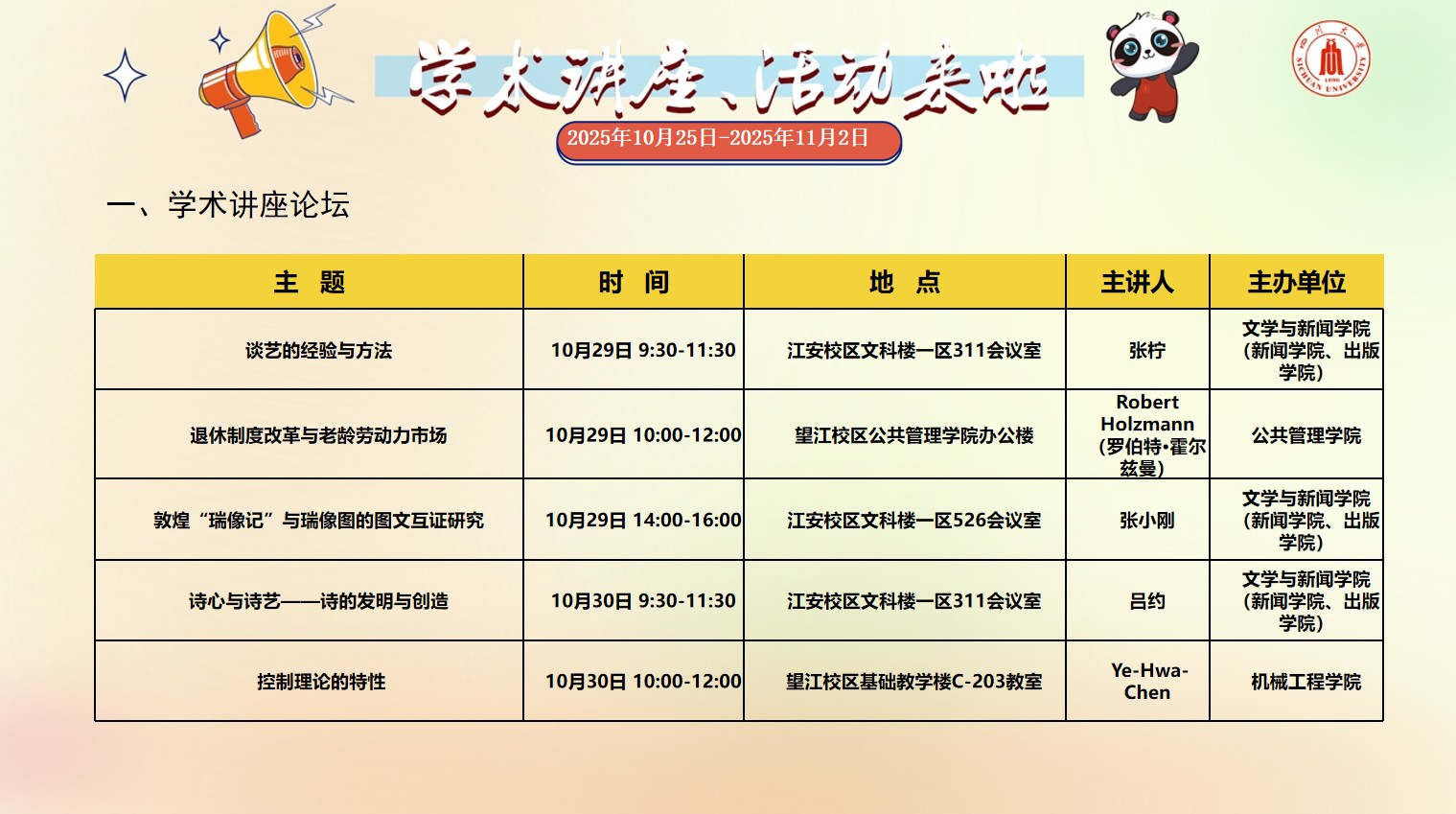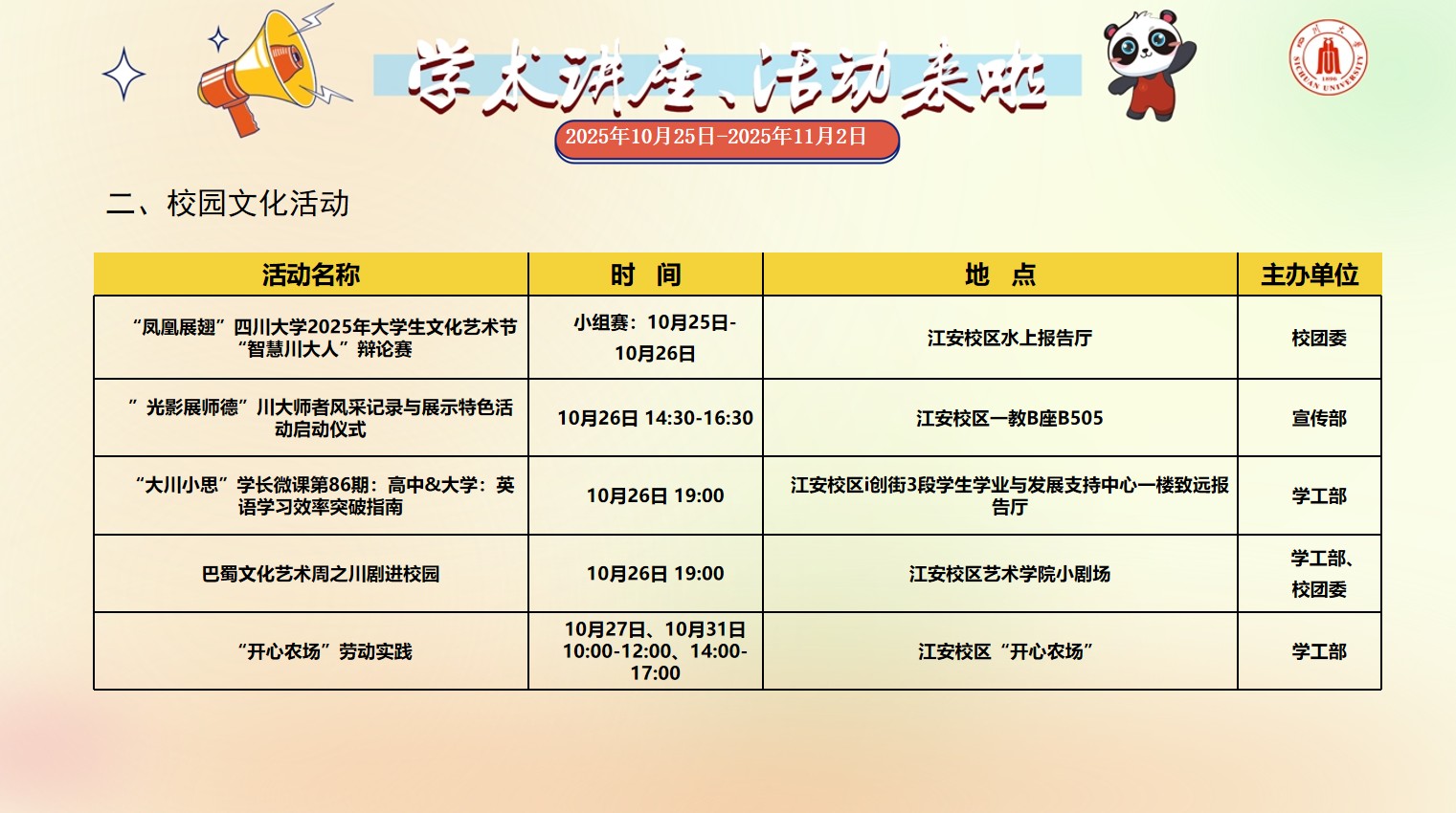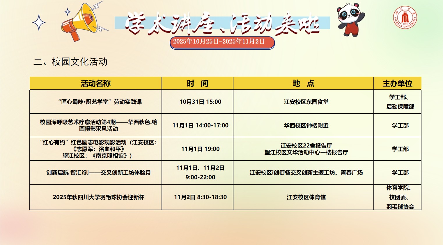 2138CC太阳集团2025年10月25日-2025年11月2日校园文化活动预告