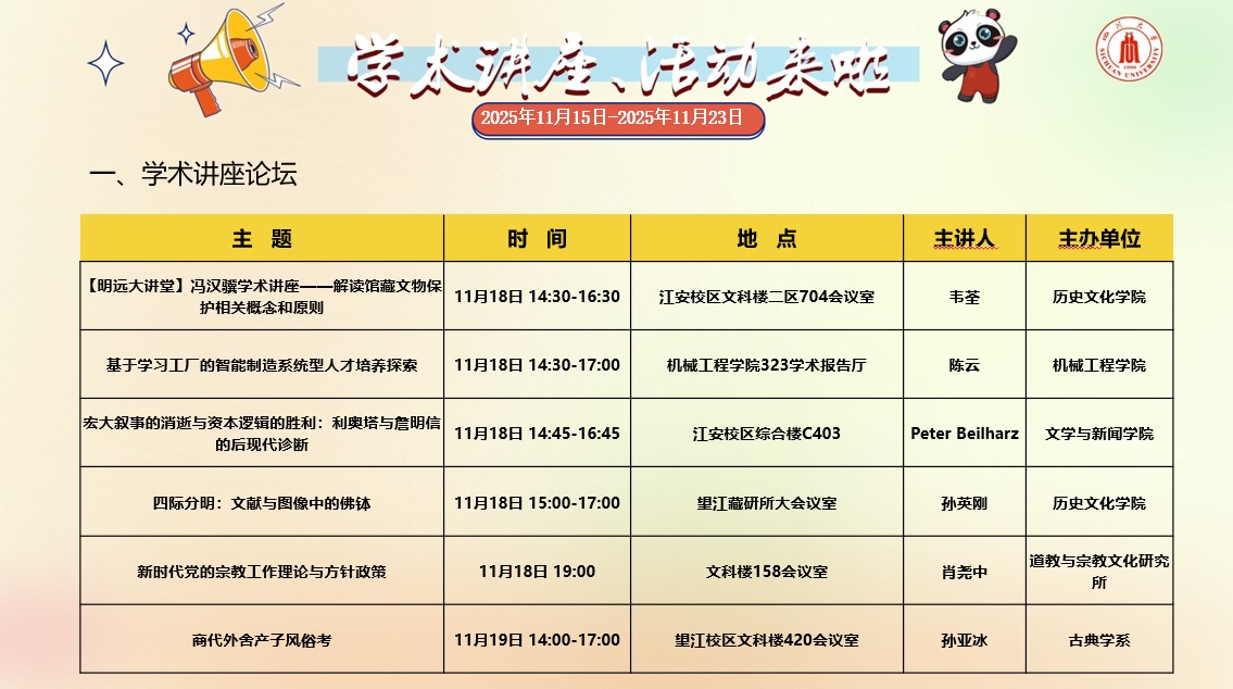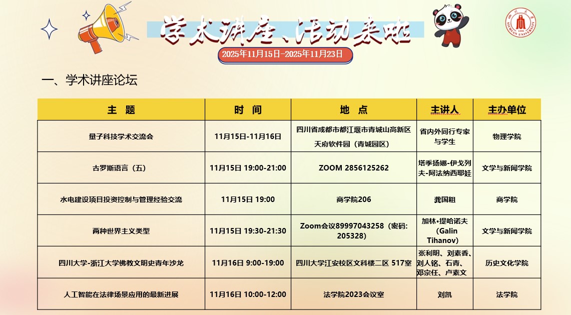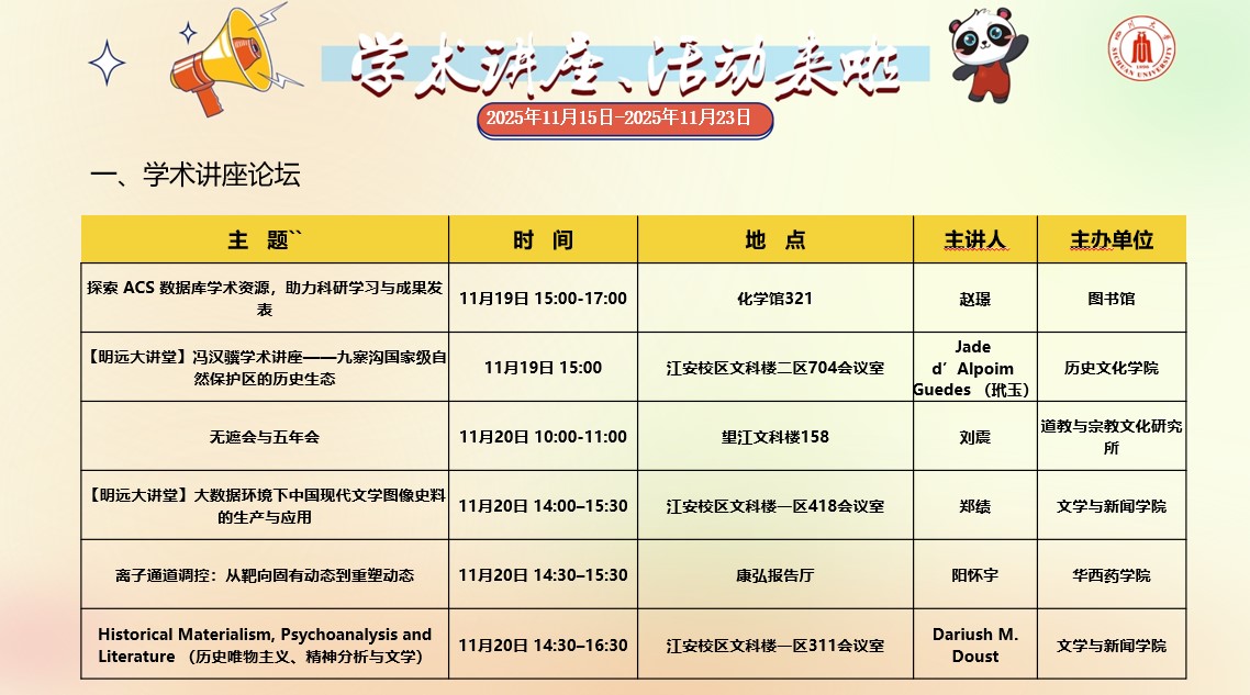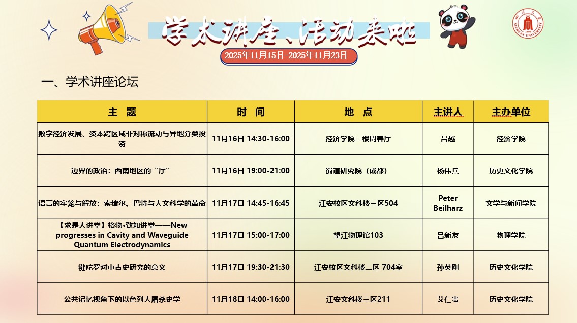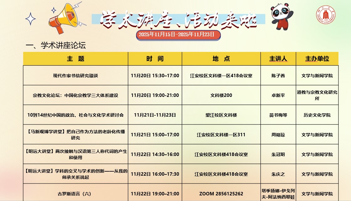 2138CC太阳集团2025年11月15日-2025年11月23日学术讲座和校园文化活动预告