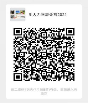 请入选营员务必于2021年7月3日24:00前登陆四川大学研究生招生信息网夏令营网报平台(https://yz.scu.edu.cn/xly)在线确认参营,否则视为自动放弃。此外,请入选营员使用各系规定平台APP扫描二维码,备注“姓名+学校”申请入群。夏令营具体活动计划和安排将通过各系夏令营群通知,请大家密切关注,如有问题,请及时联系各负责老师。