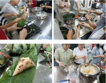 教室里,新鲜的箬叶和糯米散发着清香。尽管不少同学是第一次尝试制作粽子,但很快就掌握了技巧,叠叶、填料、扎捆,巧手翻飞下,一个个结实而饱满的粽子很快就在手中诞生。粽子各式各样、形态具异。在包粽子的过程中,老师和同学们也分享着自己家乡端午节的习俗,感受到其所蕴含的悠久文化历史与传统。制作完成后,大家齐力蒸煮粽子,在享用自己的劳动成果时,脸上都洋溢着喜悦的笑容。活动结束后,粽子被分发给了学院其他同学和老师,为他们送去一份端午祝福。
