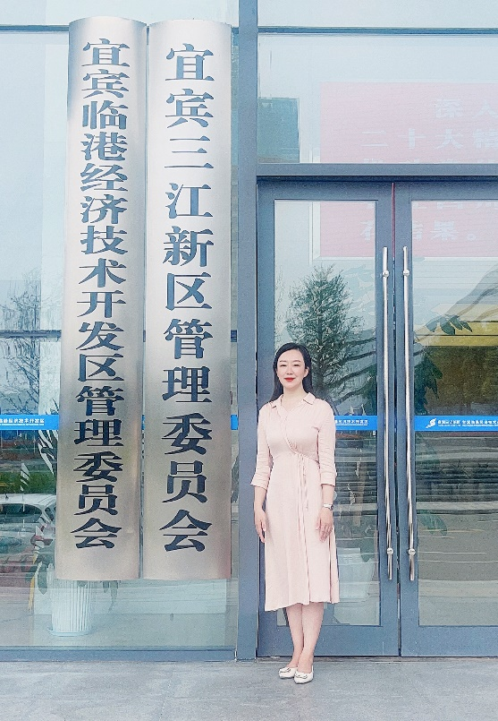 杨洁在宜宾三江新区管委会门前留影