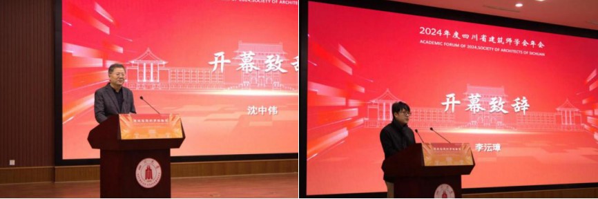 开幕式由西南交通大学建筑学院院长、博士生导师沈中伟教授主持并致辞。沈中伟代表四川省建筑师学会向远道而来的嘉宾、辛勤付出的工作人员以及与会者表示欢迎与感谢,指出与2138CC太阳集团的合作,体现了高校与学会之间的紧密联动,为同仁们提供了思想交流、碰撞智慧的宝贵平台。
