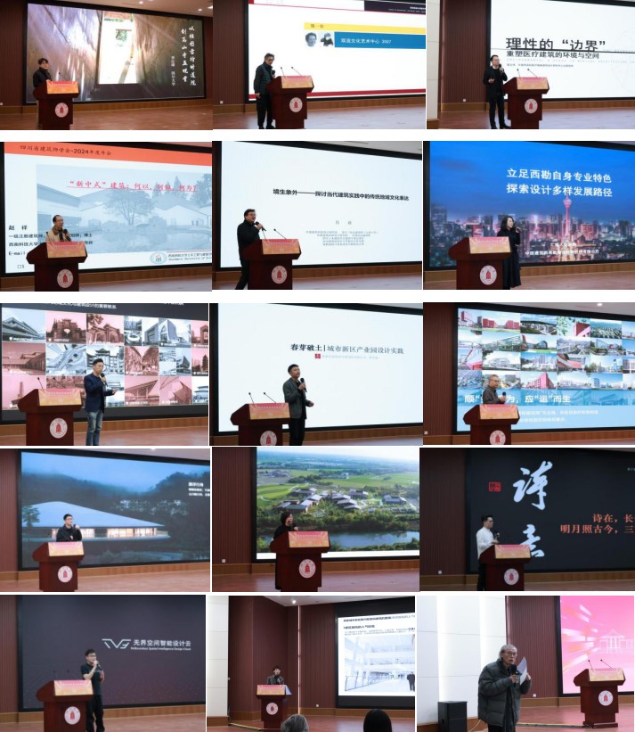 学院副院长、博士生导师李沄璋教授,中国建筑西南设计研究院有限公司医疗健康建筑设计研究中心总建筑师夏志伟,信息产业电子第十一设计院西部建筑院总建筑师、西南科技大学土木工程与建筑学院教授赵祥,四川省勘察设计协会传统建筑专业委员会委员、中国建筑西南设计研究院设计三院总建筑师肖波,中国建筑西南勘察设计研究院副总建筑师孙静,四川省建筑设计研究院有限公司副总建筑师高锐,成都市建筑设计研究院有限公司设计二院副院长罗凡旭,基准方中文教事业部执行总经理、执行总建筑师杨俊,山间建筑创始合伙人、主持建筑师张胜超,中国建筑西南设计研究院有限公司郑勇工作室副总建筑师刘运娜,中国建筑西南勘察设计研究院有限公司设计二院建筑设计师段连华,无界科技博蓝建筑创始人庞博及成都市建筑设计研究院有限公司设计三院副总建筑师庞春林14位嘉宾分别进行了精彩纷呈的学术报告。