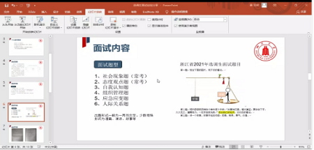 姜亚成就选调生面试的方法和技巧进行了深入细致的分享。他结合自身经历和心得感悟,主要从选调生面试流程和面试方法两个方向进行切入,不仅从自身经历提醒同学们要重视面试准备、面试仪表及谈吐等细节,更归纳总结了6种常见的面试题型,并针对如何应对不同的题型分别进行了详尽地解读。