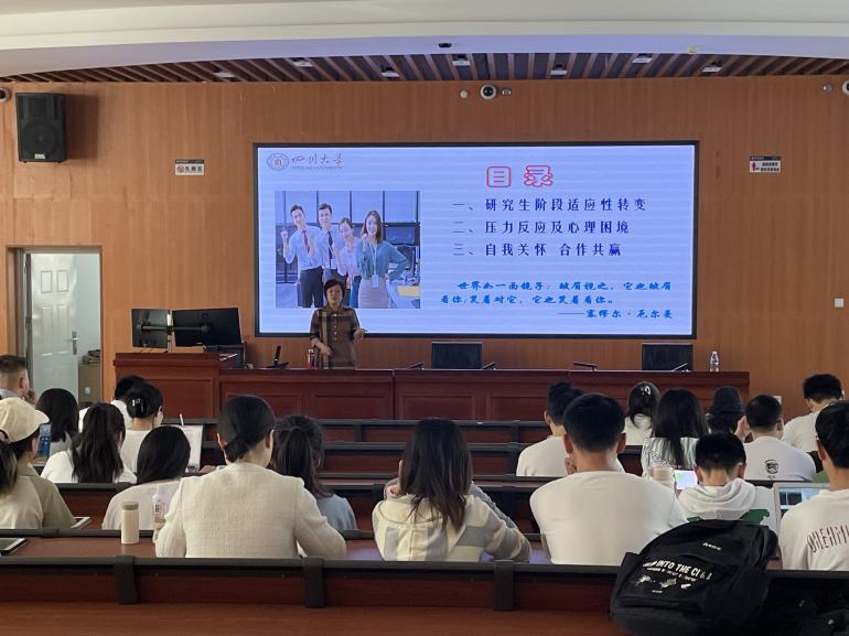 4月2日,学院在望江校区研究生院二区101教室面向研究生开展心理健康讲座。学校心理健康教育中心徐秋杰为学院全体2023级研究生做题为“自我关怀 合作共赢——研究生心理困境预防与应对”的分享。活动由学院研究生辅导员赵梓丞主持。