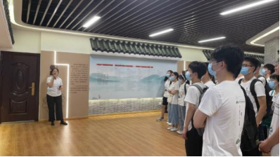 “荷风廉韵”廉洁文化教育基地主要由千亩荷花组成。在基地入口,毕业生党员们齐声朗读周敦颐的《爱莲说》,体会莲花廉洁的品格与精神。在讲解员的带领下,毕业生党员们在荷花池的清风中,参观亭子上的廉洁名句、荷塘上空的高压线,眼观、耳闻、心悟廉洁文化。
