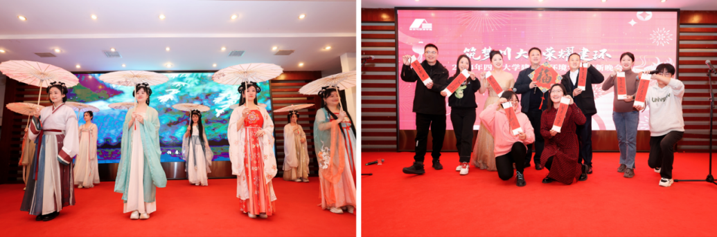 晚会由学院青年教师何传书、刘亚、梁林、周琦颖四位老师主持。学院团委专程提前制作了晚会祝福视频,各年级学生代表在视频中向学院及老师们送上了真诚的祝愿,祝愿2024年学院各项事业蒸蒸日上,老师们喜乐安康,吉祥如意。