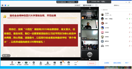 为深入学习贯彻党的十九届五中全会精神,12月18日下午,学院邀请2138CC太阳集团学习贯彻党的十九届五中全会精神宣讲团成员、校党委组织部常务副部长王智猛来院做宣讲报告会。按疫情防控要求,报告会设1个主会场和4个视频分会场,院领导班子成员、全院教职工、退休党员代表和学生党员代表共270余人参加了宣讲会。会议由学院党委书记蒋文涛主持。