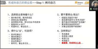 作为今年唯一的到高校工作的硕士研究生,风景园林专业预备党员郭仲薇毫无保留地分享了自己收集的可供硕士毕业生选择的高校职位类型、招聘渠道、以及针对性简历投递、高校面试等干货。被同学们誉为“地产offer收割机”的黄秋源详细分析了群面、结构面、专业面和终面四个面试环节遇到的挑战和应对策略,在线同学无不叹服。建筑学专业的韦金承从“选择”切入,讲述了如何确立择业观、如何衡量公司岗位与自身匹配度等心路历程。随后的问答环节中,同学们踊跃提问,嘉宾们耐心作答,线上会议室气氛热烈。