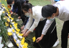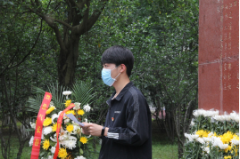 全体人员默哀一分钟,并向英烈碑三鞠躬,进行无声的缅怀。本科2018级党员代表胡婷婷向先烈献花。2020级团员代表陈奕驰在碑前许下庄严承诺,他表示,如今我们新时代的青年正接过革命的红色炬火,必会自强,必当不辱使命,革命先烈所期盼的中华,我们亦愿为之砥砺前行!