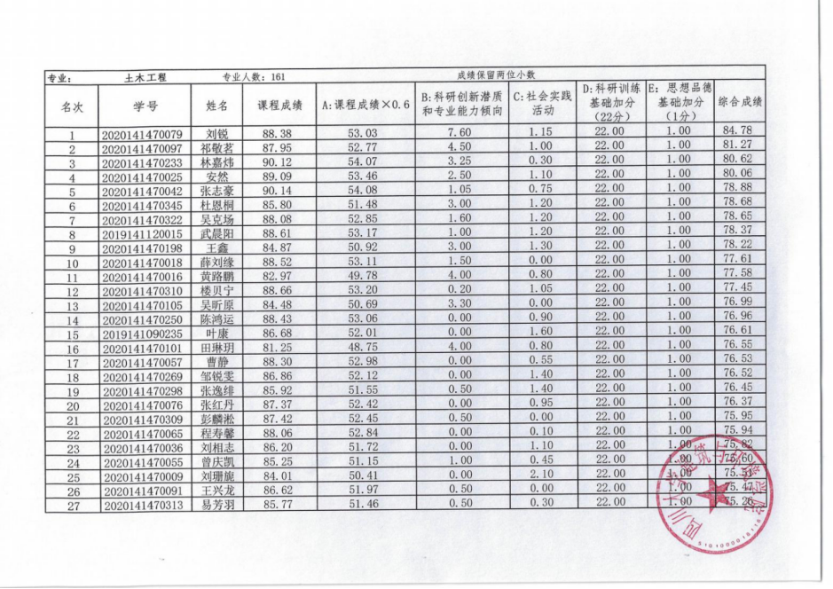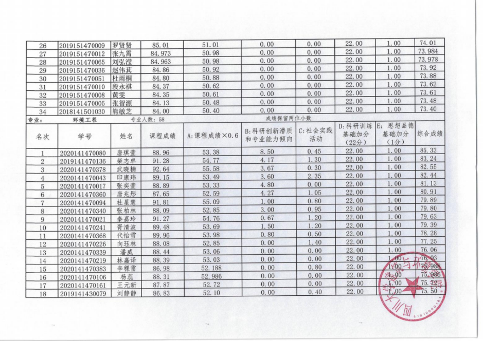 经过建筑与环境学院成绩计算、专家审核,现将我院2024届推荐免试研究生综合成绩公示如下,公示时间由2023年9月15日至9月18日下午17:00。