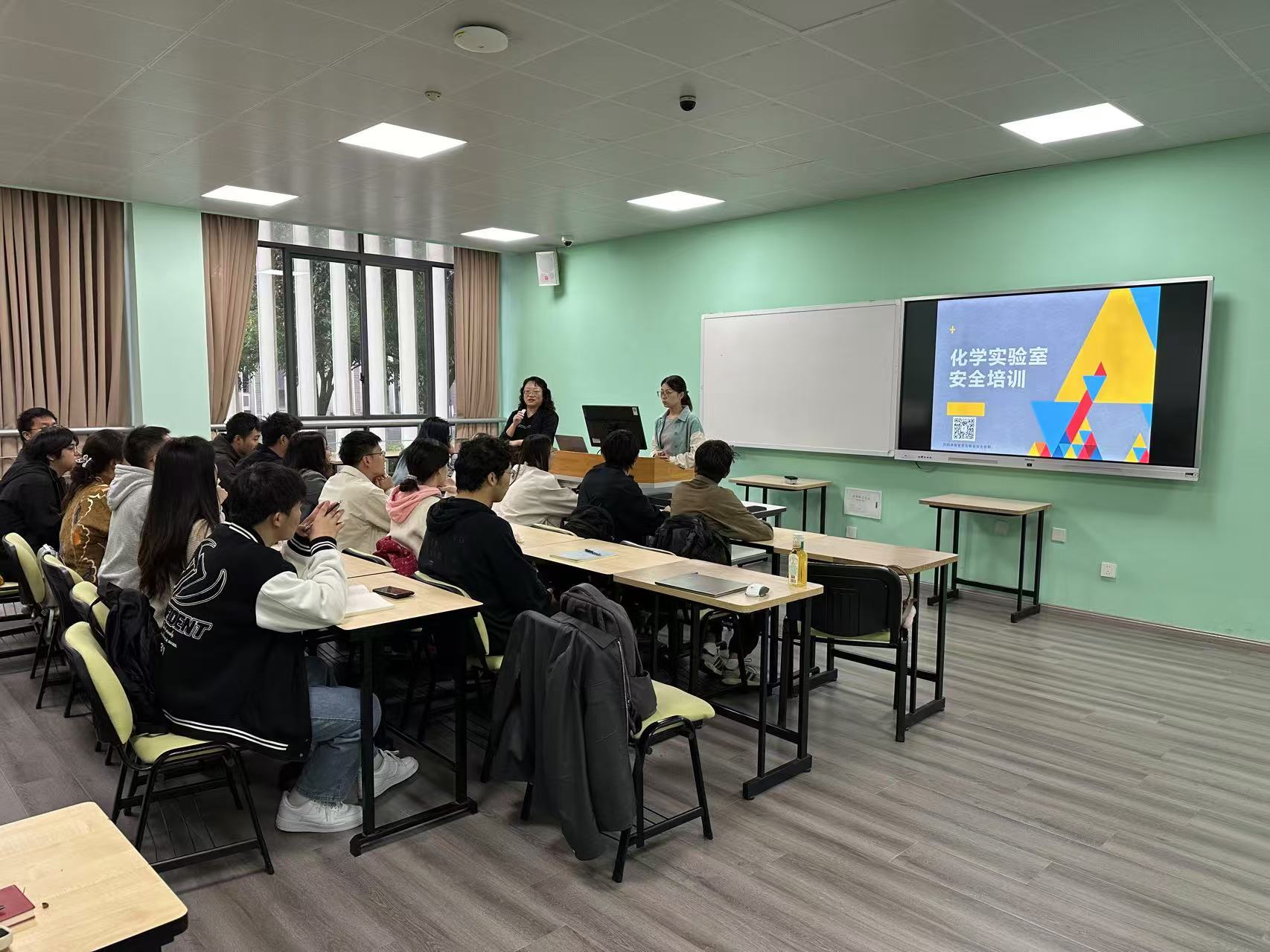 陈滢老师结合近年来国内外实验室安全事故案例,深入浅出地讲解了实验室安全管理制度、危险化学品管理、个人防护装备使用、紧急疏散与救援等关键知识。特别是针对环境学科实验中的特殊风险点,如重金属处理、有机溶剂使用等,进行了详细的介绍。培训过程中,通过互动问答和小组讨论,学生们积极参与,不仅加深了对安全知识的理解,也增强了团队协作与应急响应能力。